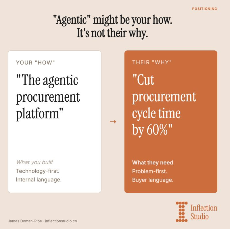 “Agentic” is high-altitude language, at a level level the buyer hasn’t reached yet - and might never reach if you don’t give them a reason to care first.