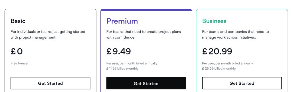 And now Asana: their £9.49 plan feels like an absolute steal compared to the £20.99 plan.