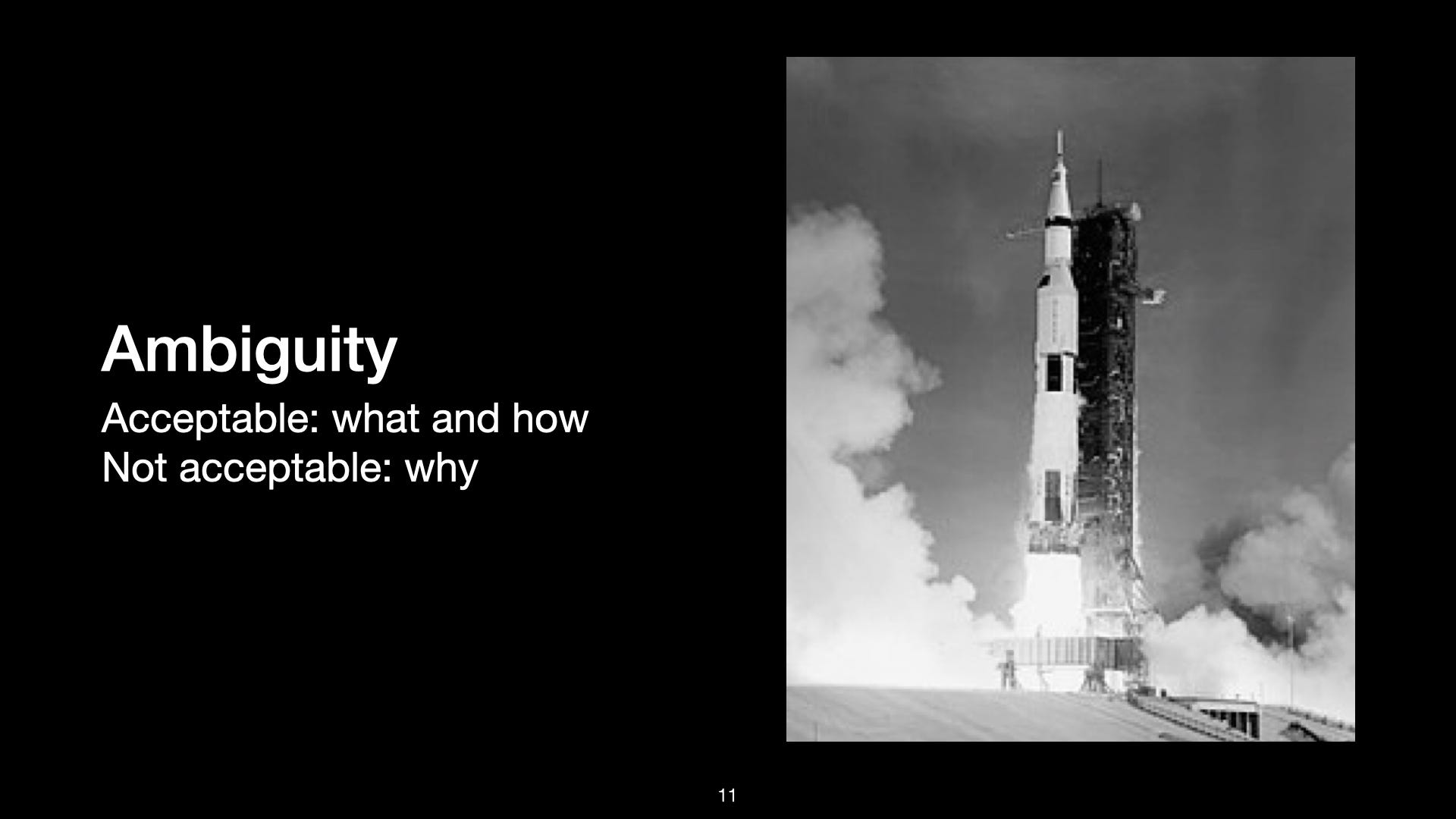 Ambiguity on what you’ll do, and how you’ll get there is much more acceptable.