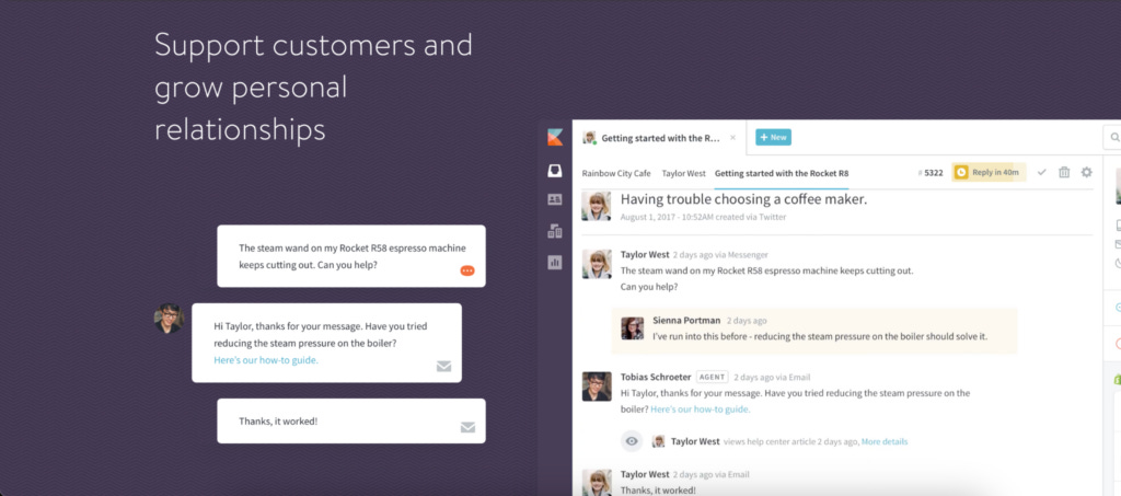 At Kayako, we introduced Brewfictus, a fictional coffee shop. The same customer tickets and internal team showed up everywhere from the website, and demos, to onboarding flows and ads.