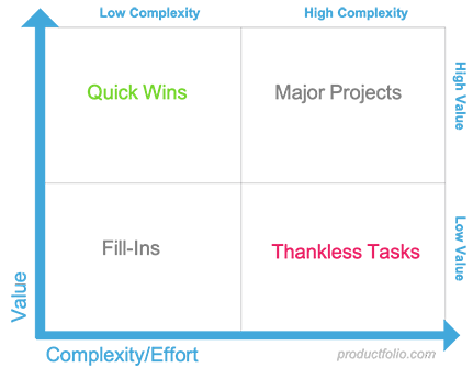 Maybe there are quick wins that provide high impact that you're pretty confident about, without much effort: a prime opportunity to get stuck in.